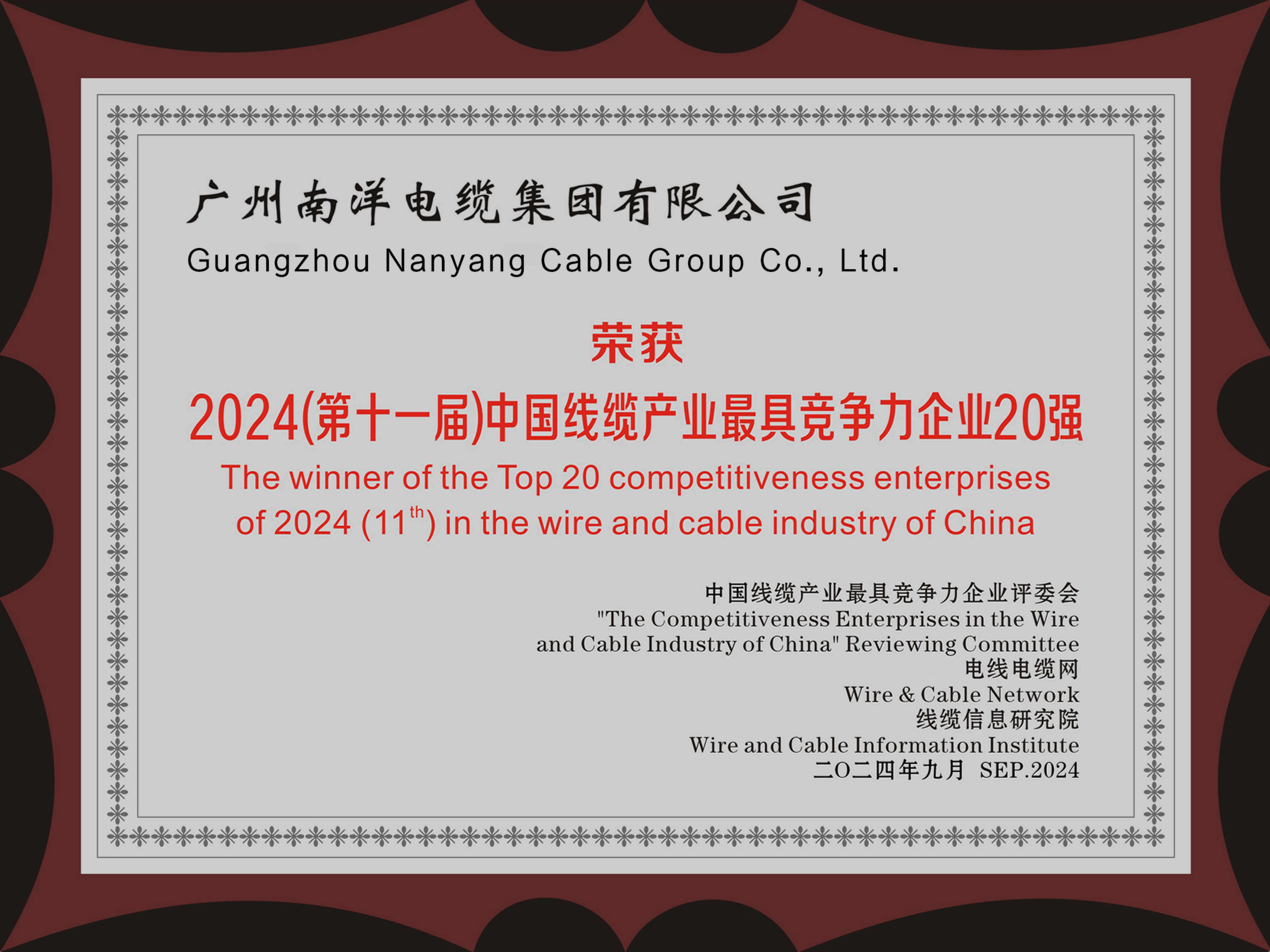 廣東線纜行業(yè)最具競(jìng)爭(zhēng)力企業(yè)第一名、中國(guó)線纜行業(yè)最具競(jìng)爭(zhēng)力企業(yè)20強(qiáng)、華南地區(qū)電線電纜研發(fā)制造龍頭企業(yè)